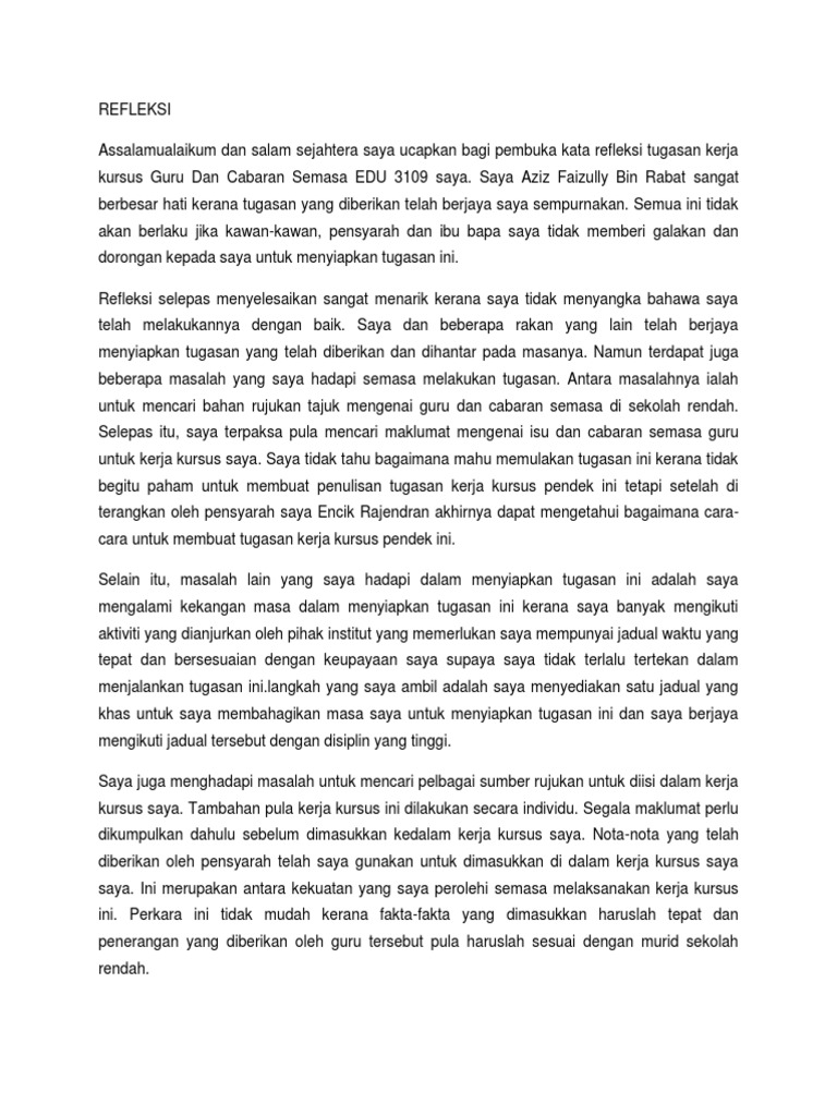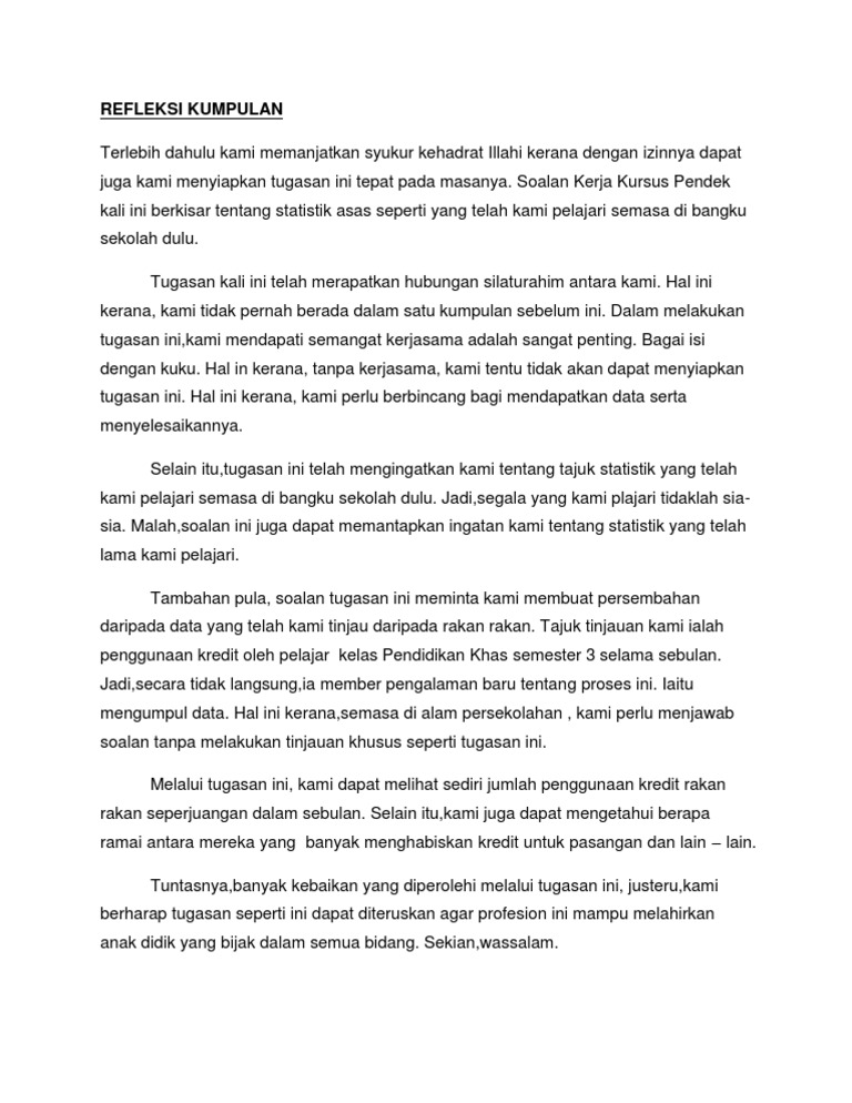 Contoh Refleksi Kerja Kursus Pendek Titas Pdf